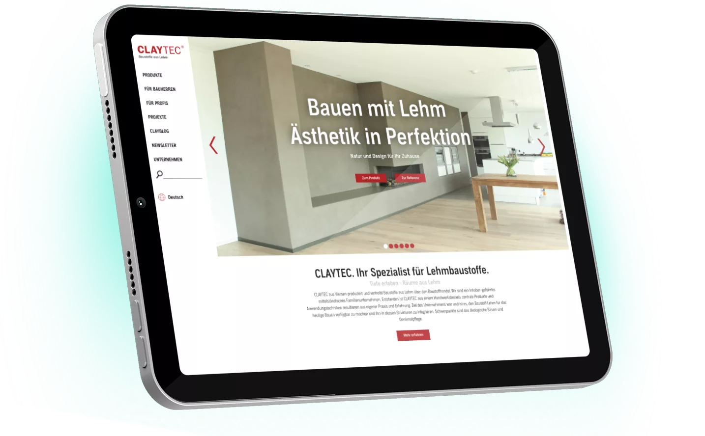 Claytec ist der Spezialist für Lehm. Das Familienunternehmen aus Viersen produziert und vertreibt Lehmbaustoffe über den Baustoffhandel und das Handwerk. Der Gründer von Claytec, Peter Breidenbach, war einer der ersten, der sich Anfang der 80er Jahre mit Lehm professionell auseinandergesetzt hat. Und das Unternehmen in wenigen Jahren zum Marktführer für den innovativen Baustoff entwickelt hat.